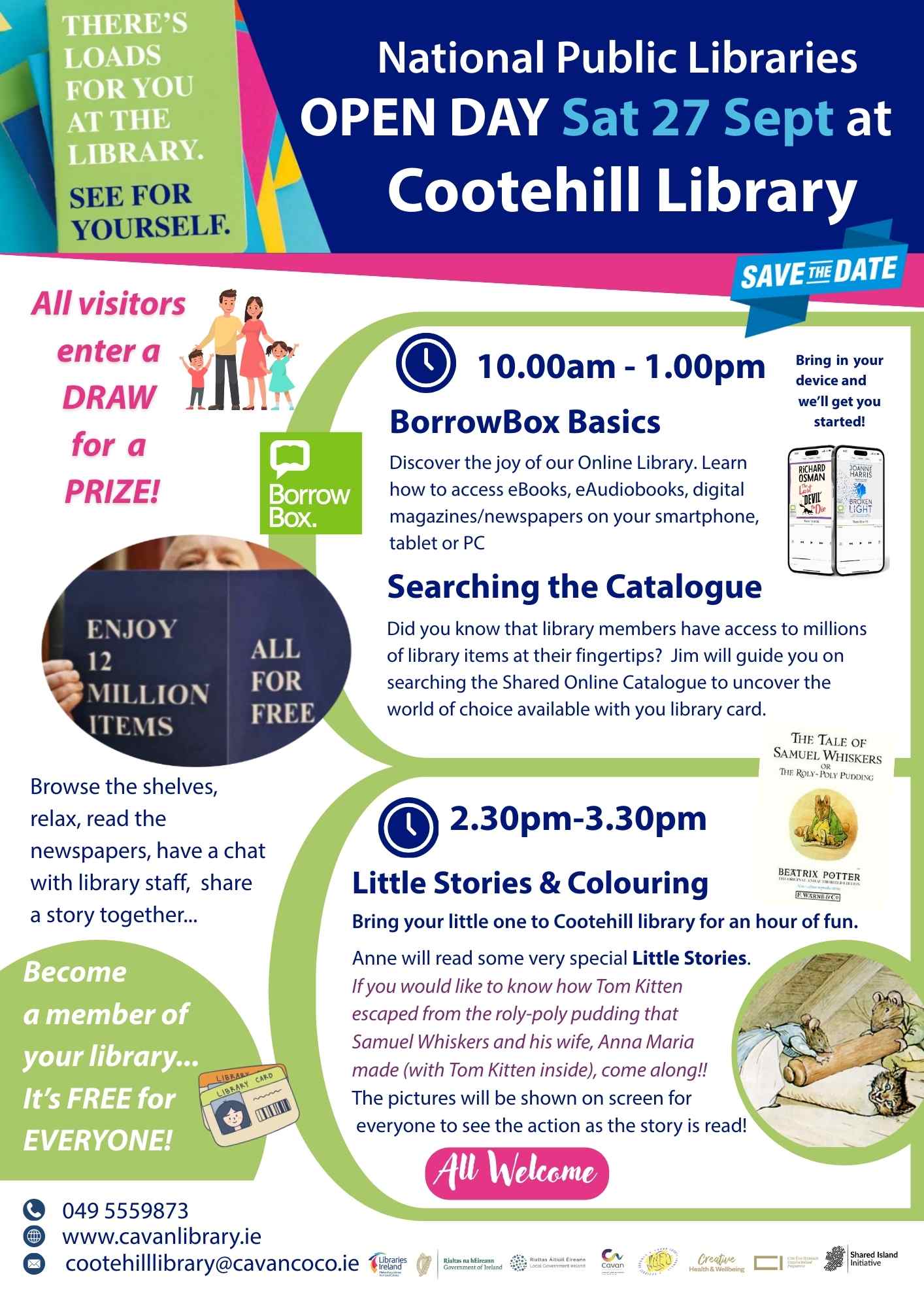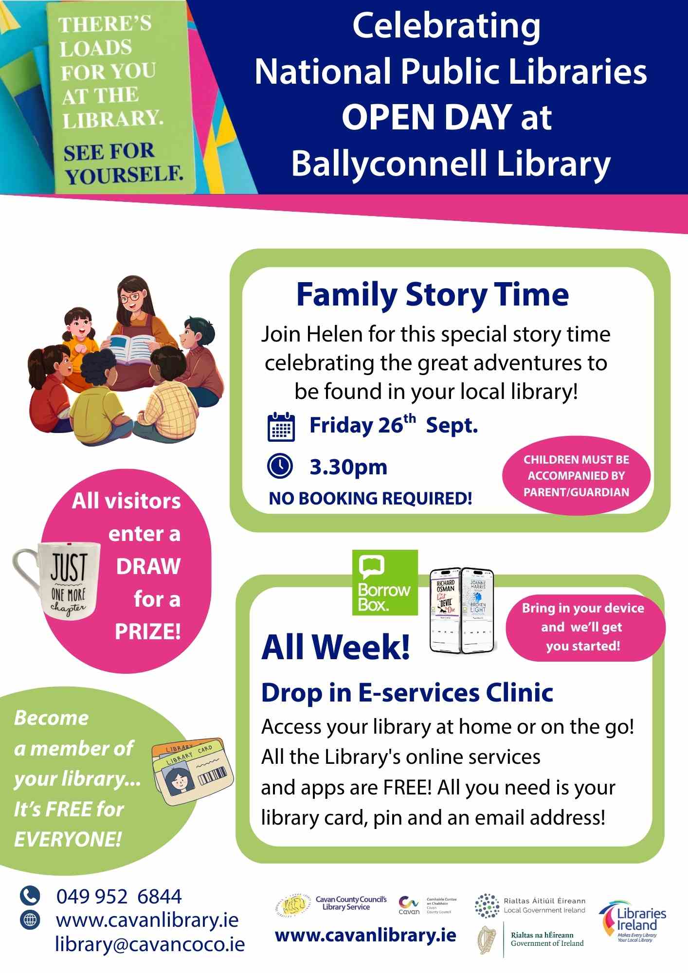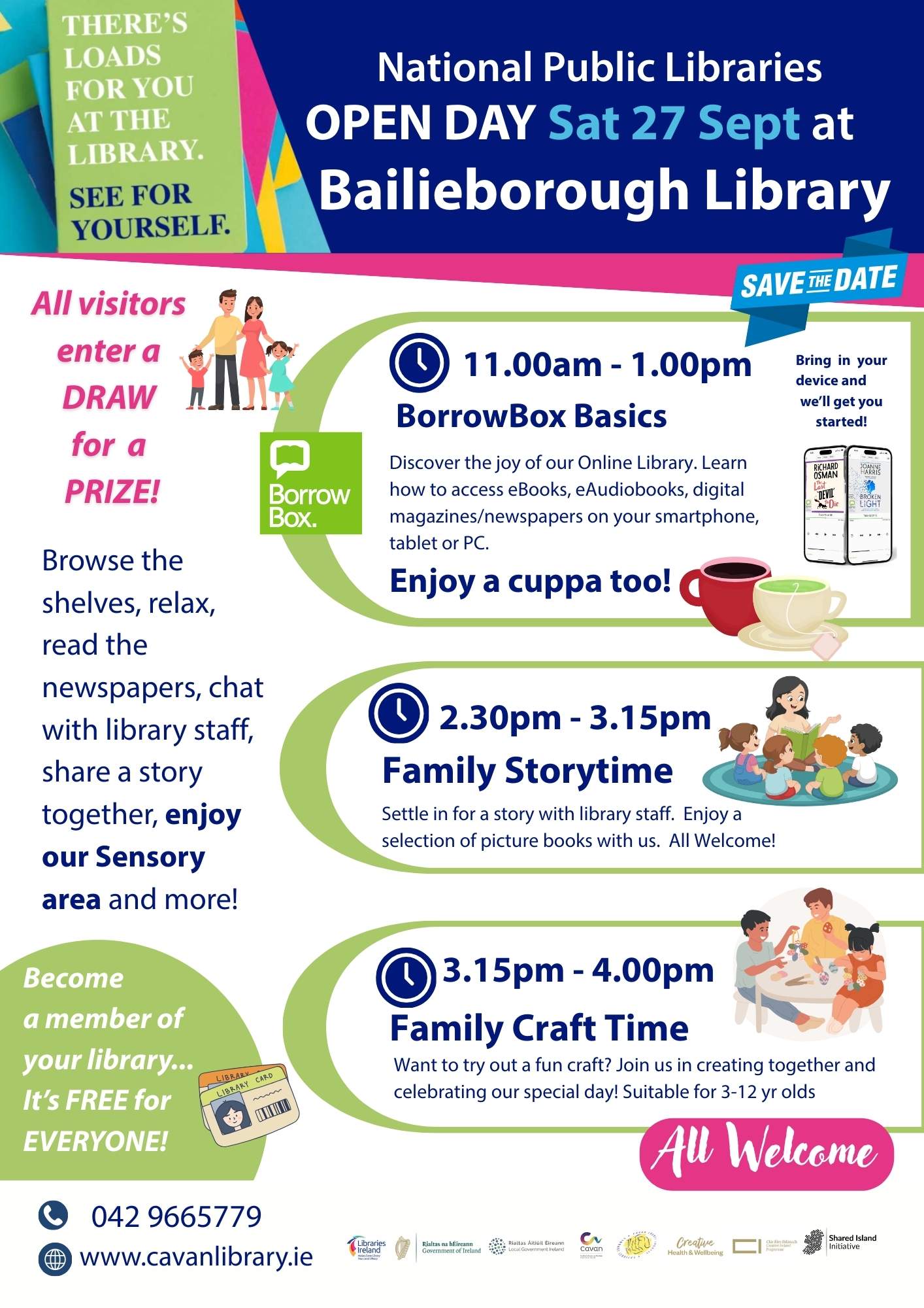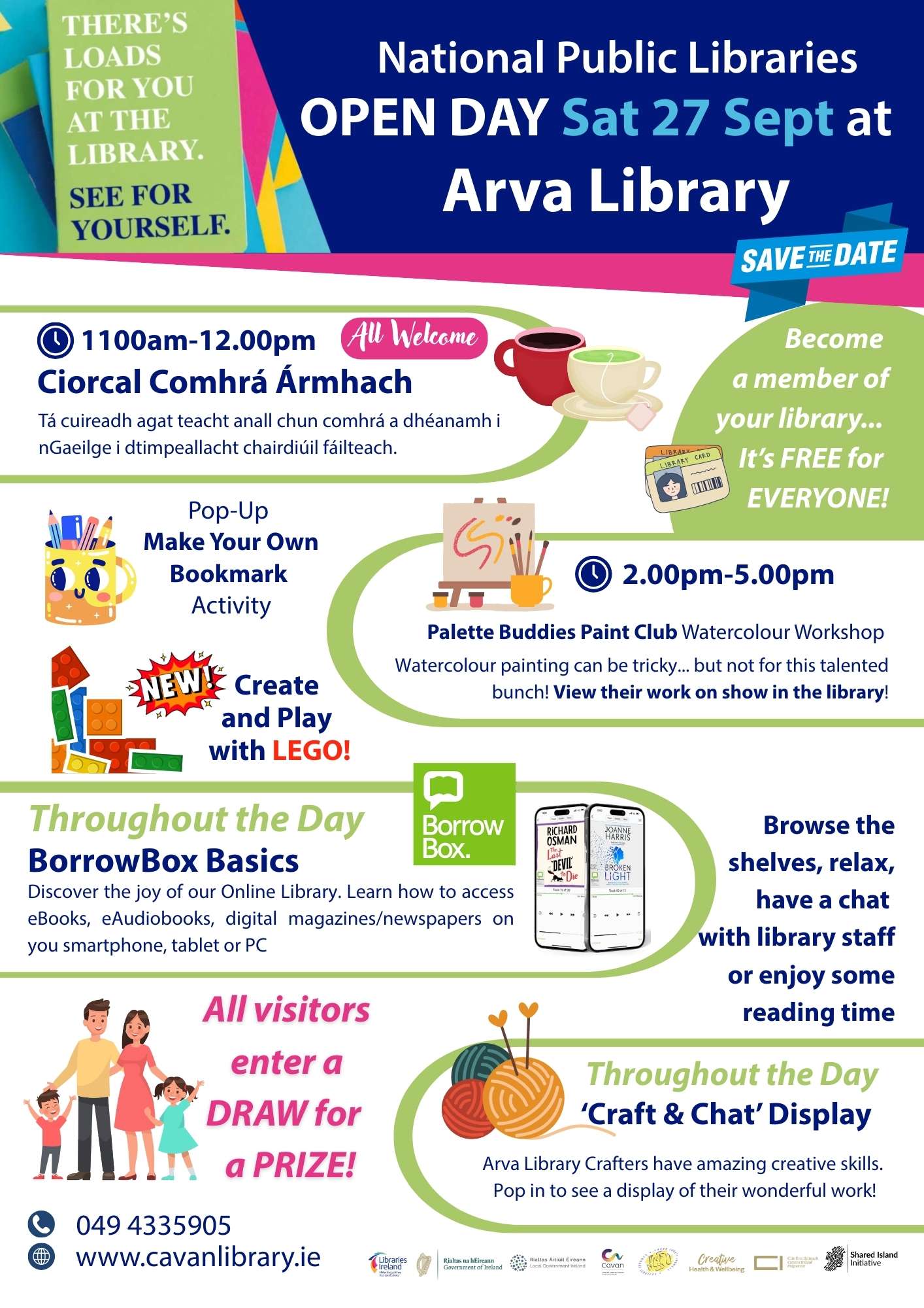 Beidh Seirbhís Leabharlainne an Chabháin páirteach le leabharlanna ar fud na hÉireann Dé Sathairn, 27 Meán Fómhair chun Lá Oscailte Náisiúnta na Leabharlanna Poiblí 2025 a cheiliúradh.